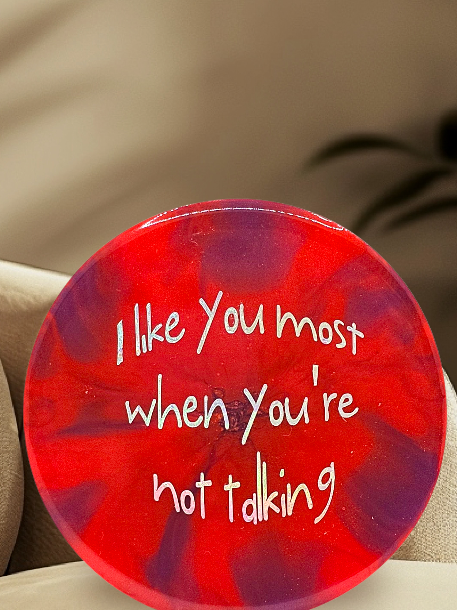 "I Like You Most When You're Not Talking" Resin Coaster Set